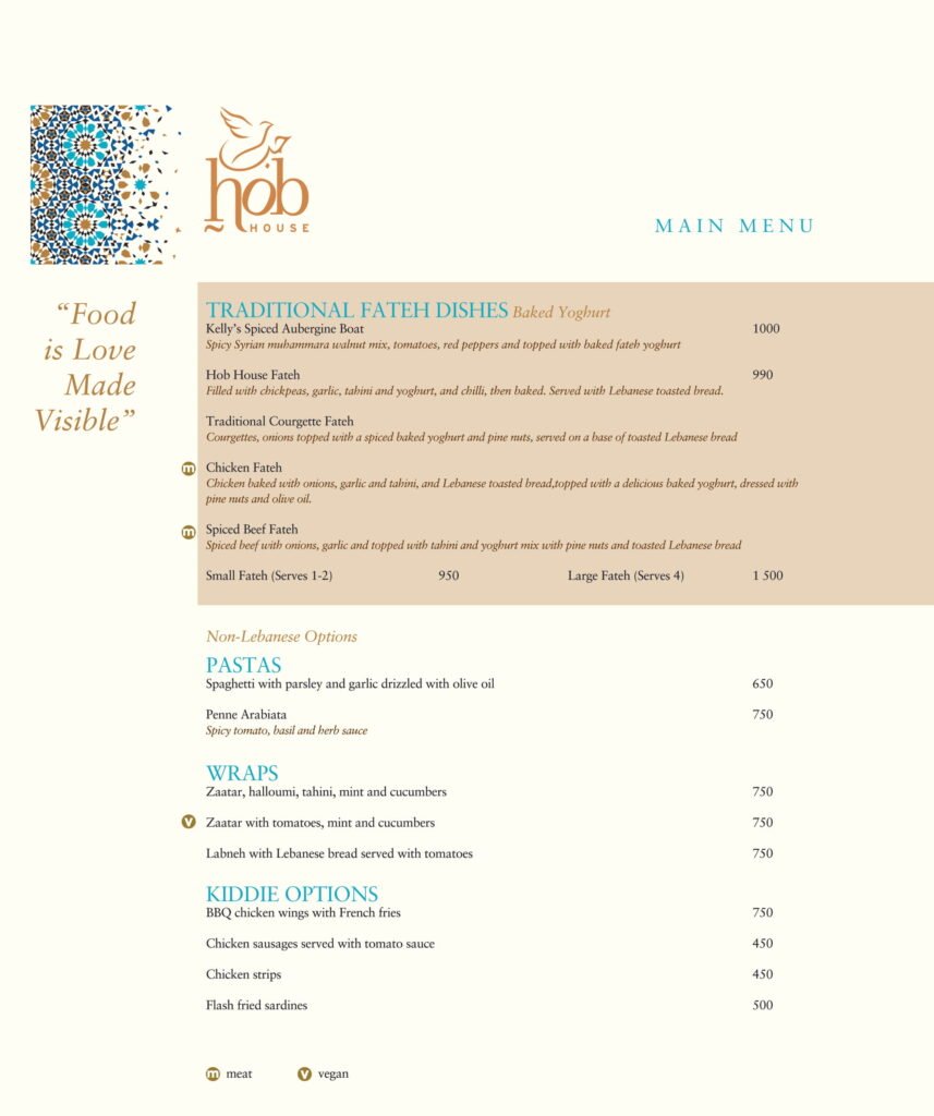 Hob House Restaurant Nairobi offers a soulful escape in the heart of Kitisuru, blending authentic Lebanese heritage with a tranquil garden atmosphere. As a premier destination for those seeking a “home away from home,” the restaurant is celebrated for its ethical approach to hospitality and its vibrant Mediterranean menu. Hob House, Nairobi specializes in home-cooked favorites, ranging from traditional mezze and creamy hummus to hearty, slow-cooked tagines that cater to both vegetarians and meat lovers. Whether you are visiting for a serene weekend brunch or an intimate dinner under the stars, the combination of Mediterranean warmth and lush greenery makes this one of the most unique dining spots in the city.