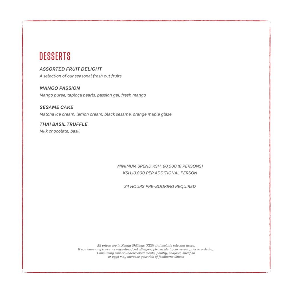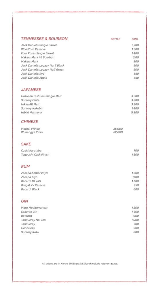 Perched on the 31st floor of JW Marriott Hotel Nairobi, Mr. Pang Sky Bar & Lounge is an adults-only rooftop escape, where fine dining, signature cocktails, and breathtaking skyline views come together. Whether it’s a romantic dinner, date night, celebration, or private function, Mr. Pang offers an unforgettable experience.