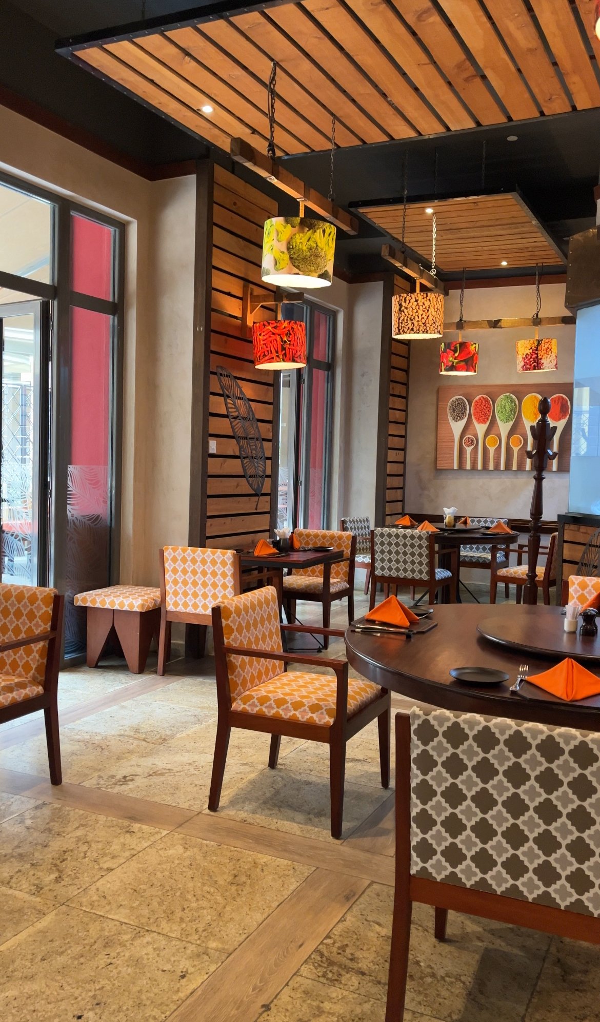 Herbs & Spices at the Nairobi Serena Hotel offers a sophisticated culinary journey through South East Asia. Featuring a contemporary yet cozy interior with natural color palettes and rustic wooden finishes, the restaurant provides a versatile dining experience with both indoor and outdoor terrace seating.