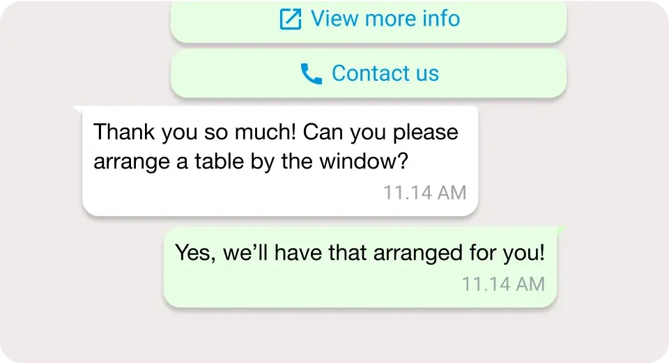 Tap into the power of WhatsApp at your restaurant for seamless two-way messaging, real-time reservation updates, and personalized marketing.