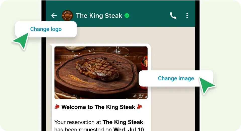 Create your own branded templates so that customers get a feel for your venue and who you are – ensuring WhatsApp fits right into your existing messaging strategy without sacrificing your brand identity.